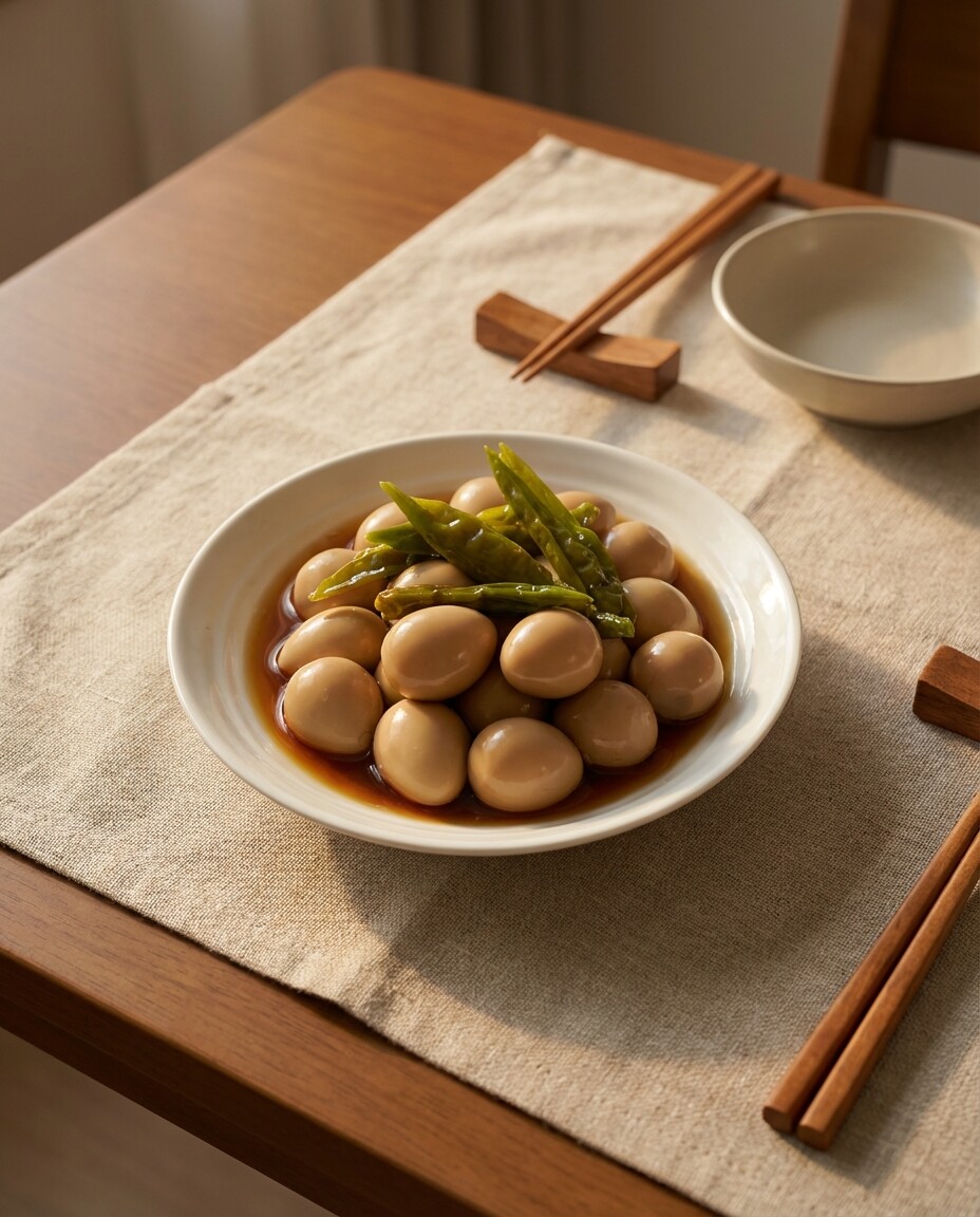야채육수에 꽈리고추를 넣고 만든 메추리알장조림