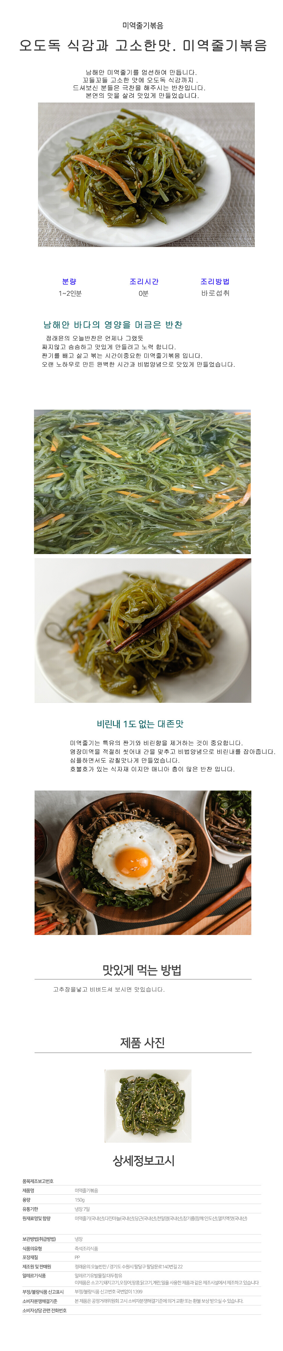 비린내1도없는 대존맛 미역줄기볶음