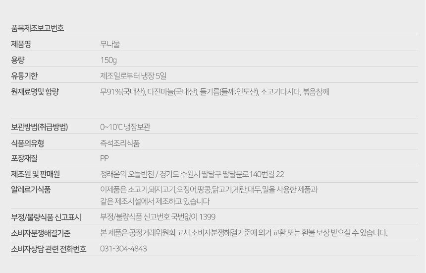 아삭한 무에 다진 마늘이 알싸함을 더하고 들기름으로 정제되고 담백하면서 고소한 맛을 냈습니다.